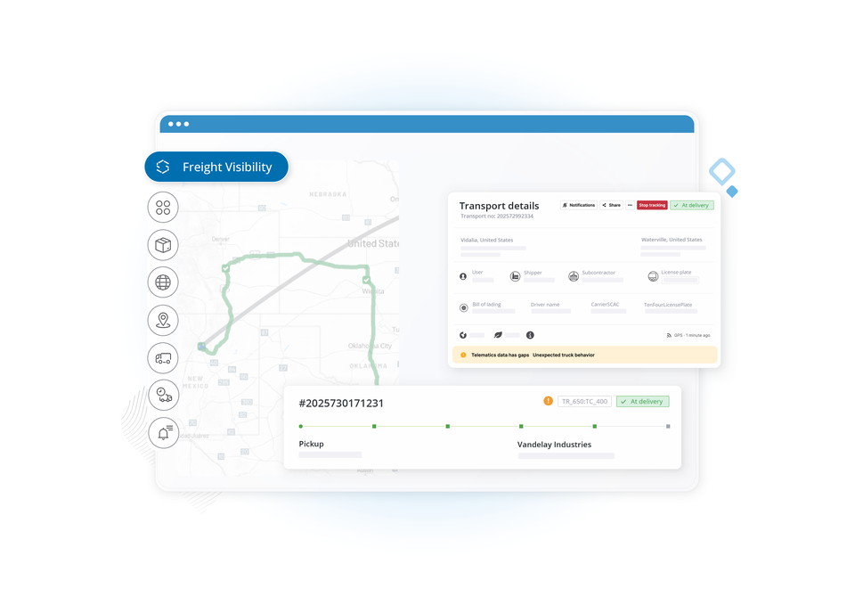 Never wonder where your loads are or when they'll arrive. Trimble Freight Visibility™ gives shippers, carriers, brokers, and LSPs access to precise AI-enabled ETAs and more for in-transit shipments—all in one powerful solution.