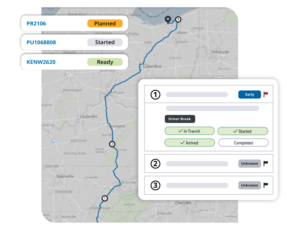 The execution center for moving freight from point A to point B, integrating with visibility vendors to provide operational clarity. AI-powered trip management capabilities incorporate driver routes and hours of service (HOS) data to deliver highly accurate estimated times of arrival (ETAs) for dispatches.