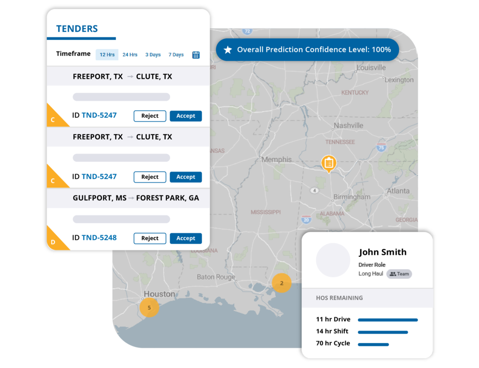 The central hub for customer service representatives (CSRs) for accepting tenders, building loads and scheduling. This module is powered by AI features like predictive balance, order management and tender evaluation, which grade tenders automatically and offer a seven-day forecast of your load balance. Plus, you can automatically accept new orders that fit your business.
